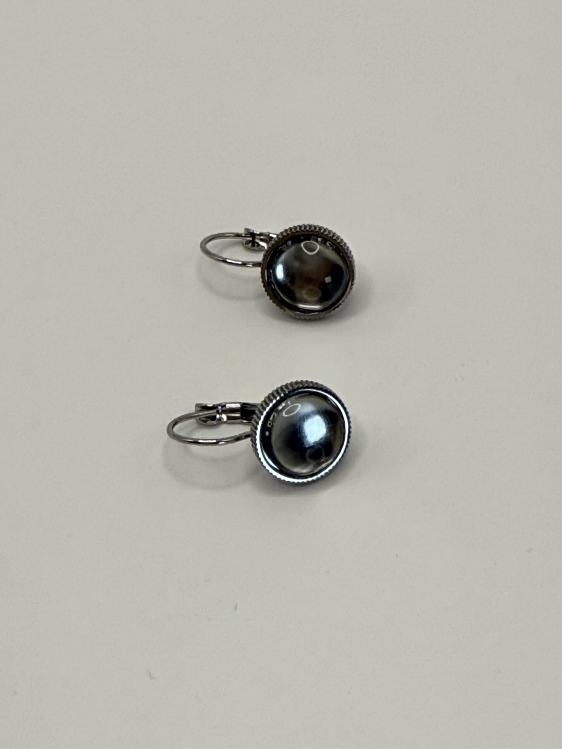Boucles dormeuses LUNA ARGENTÉ en acier inoxydable et cabochon en verre.