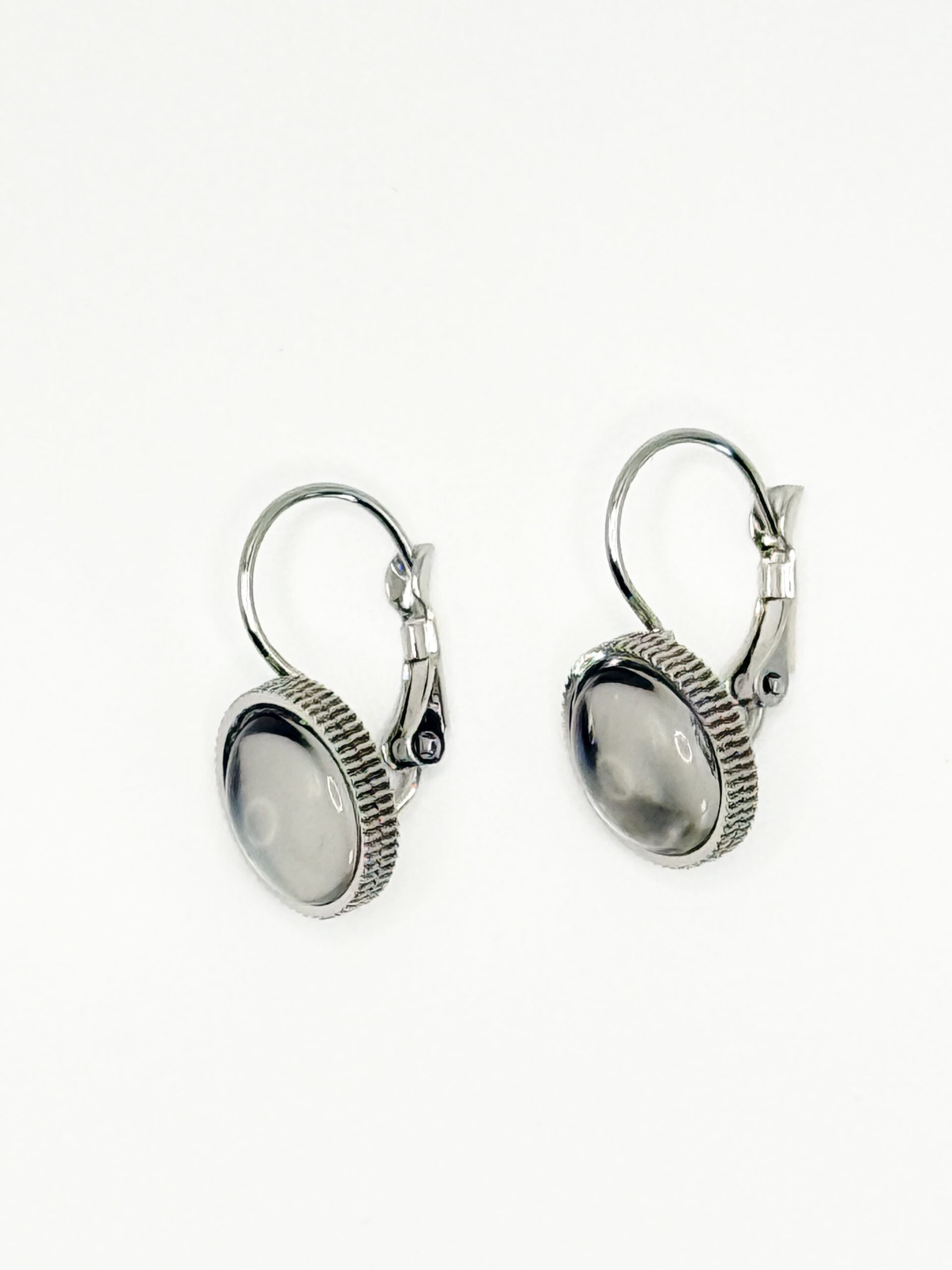 Boucles dormeuses en acier inoxydable LUNA ARGENTÉ apporte une touche de lumière grâce à son cabochon en verre .