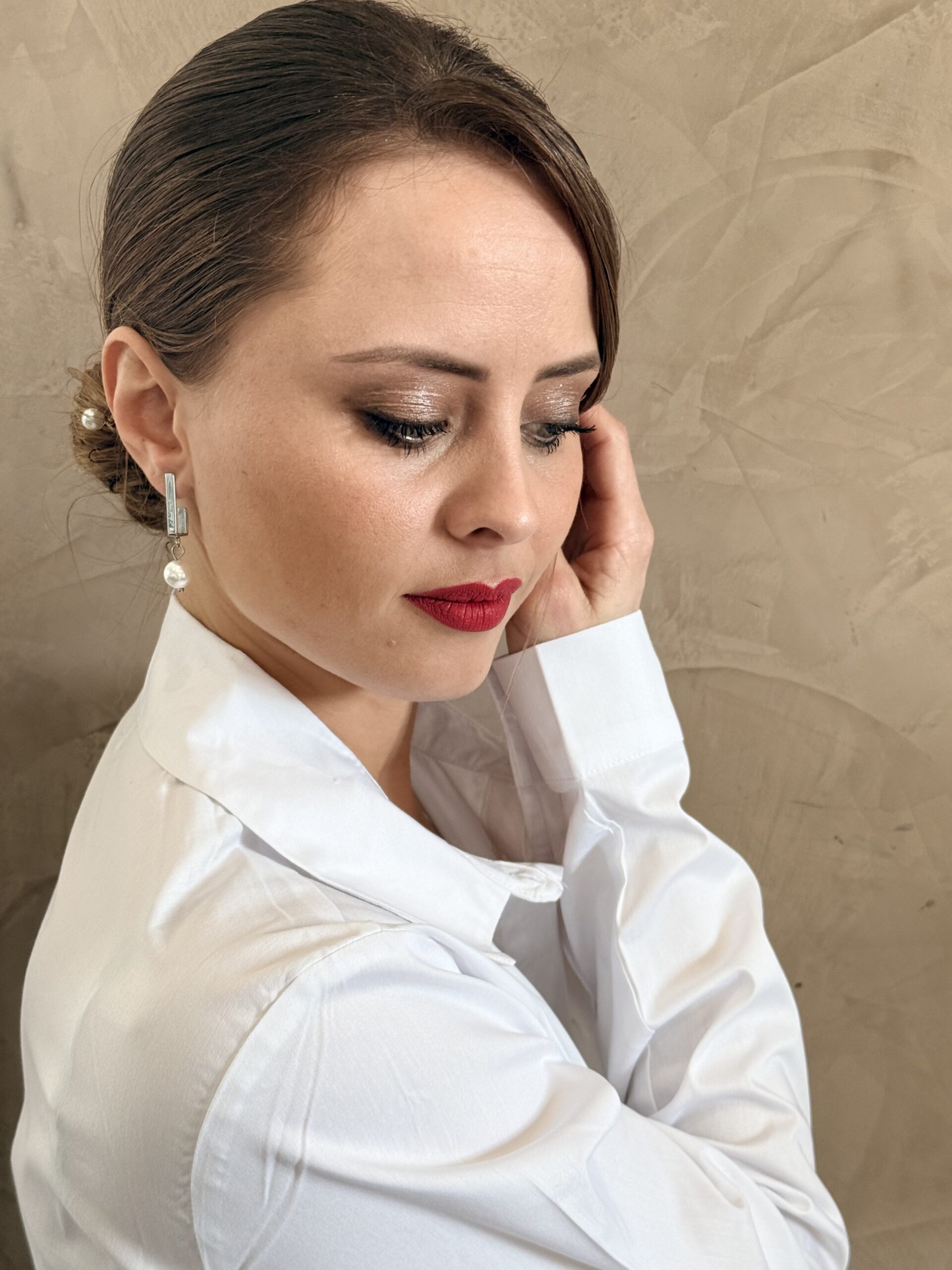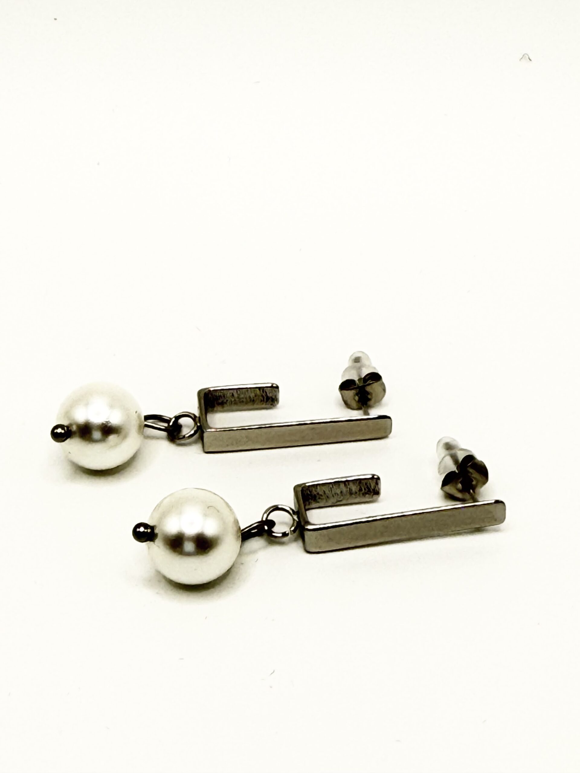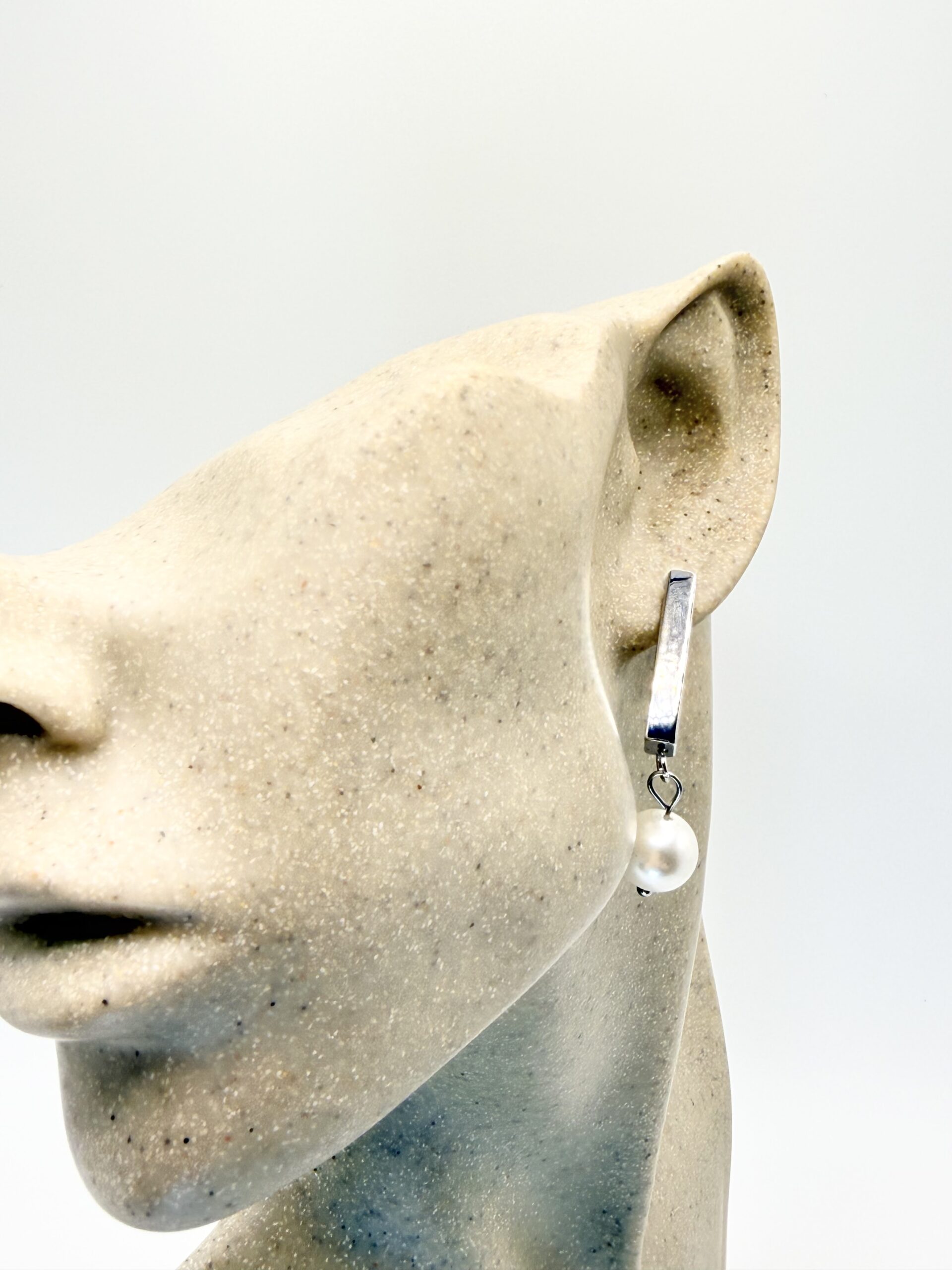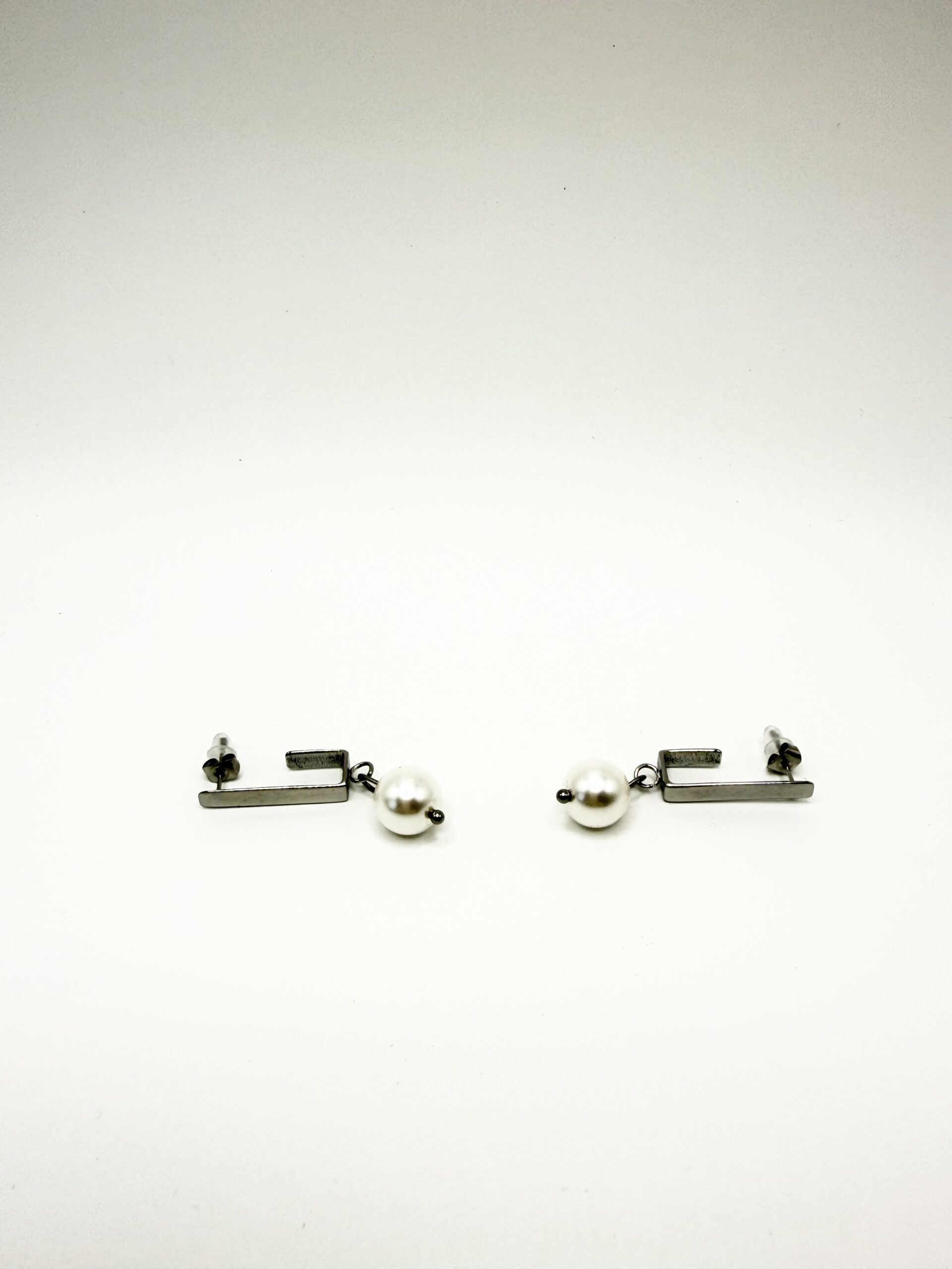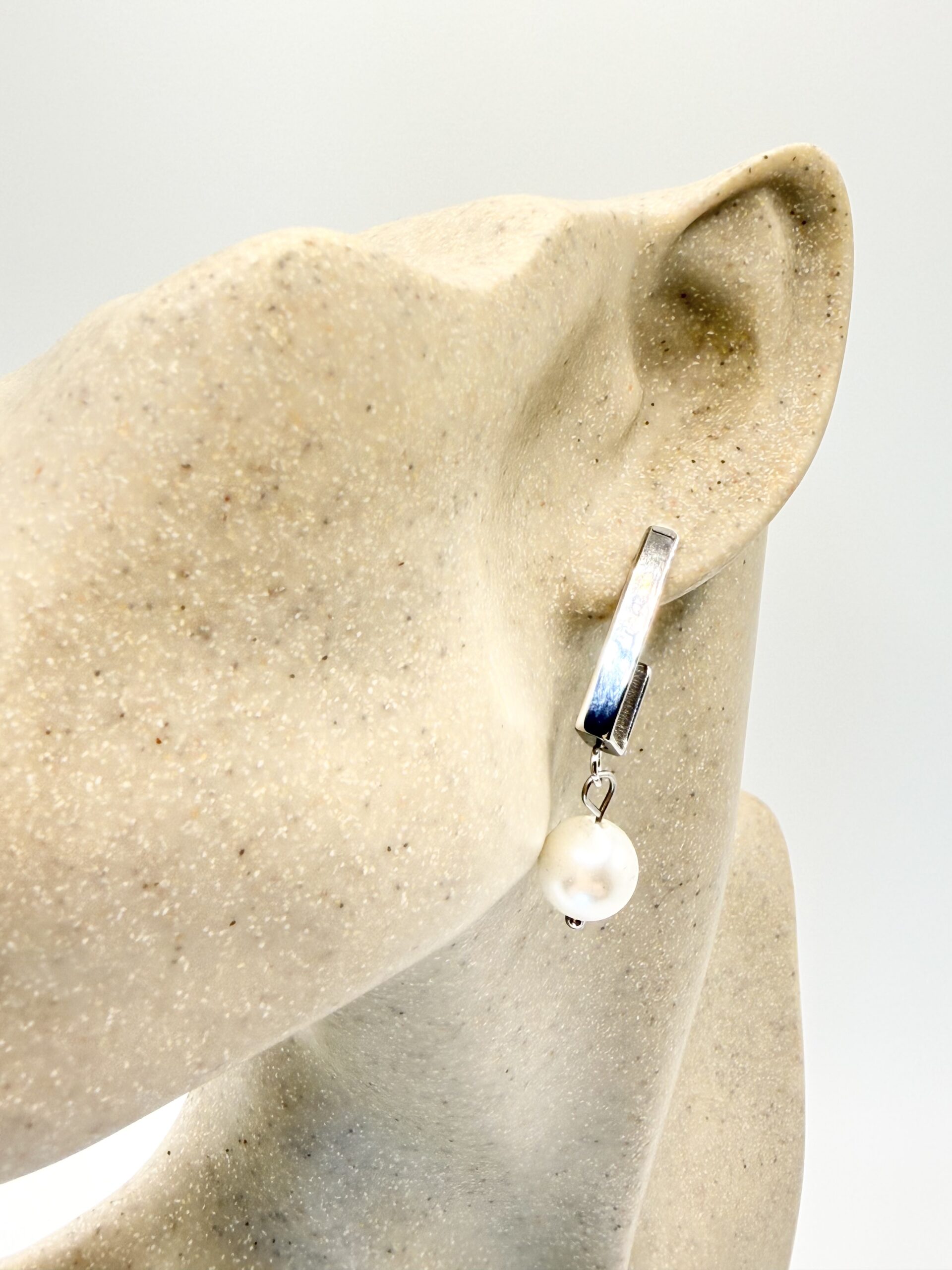 Nos boucles NINA ARGENTE rectangle sont en acier inoxydable argenté orné d’une perle en verre nacrée.