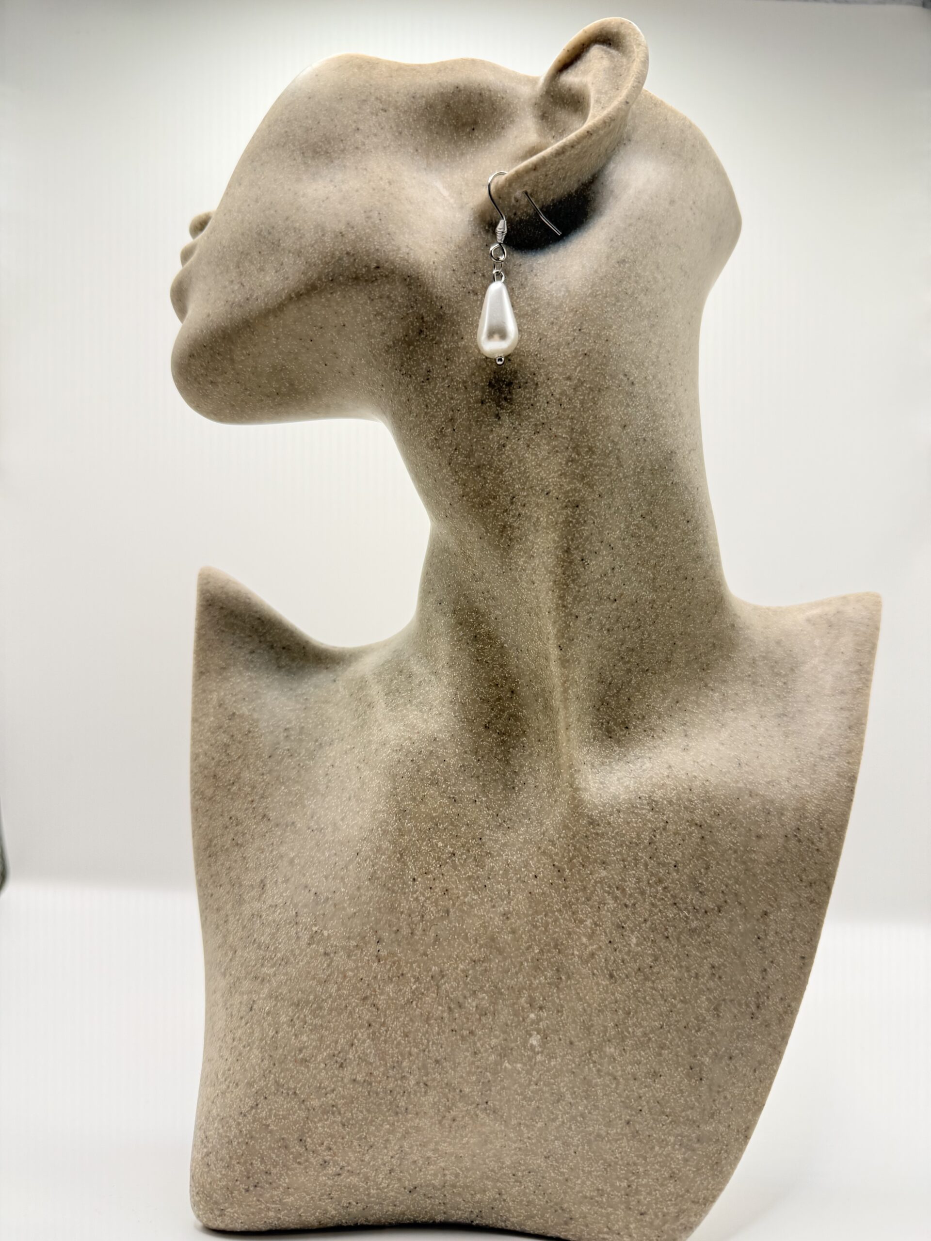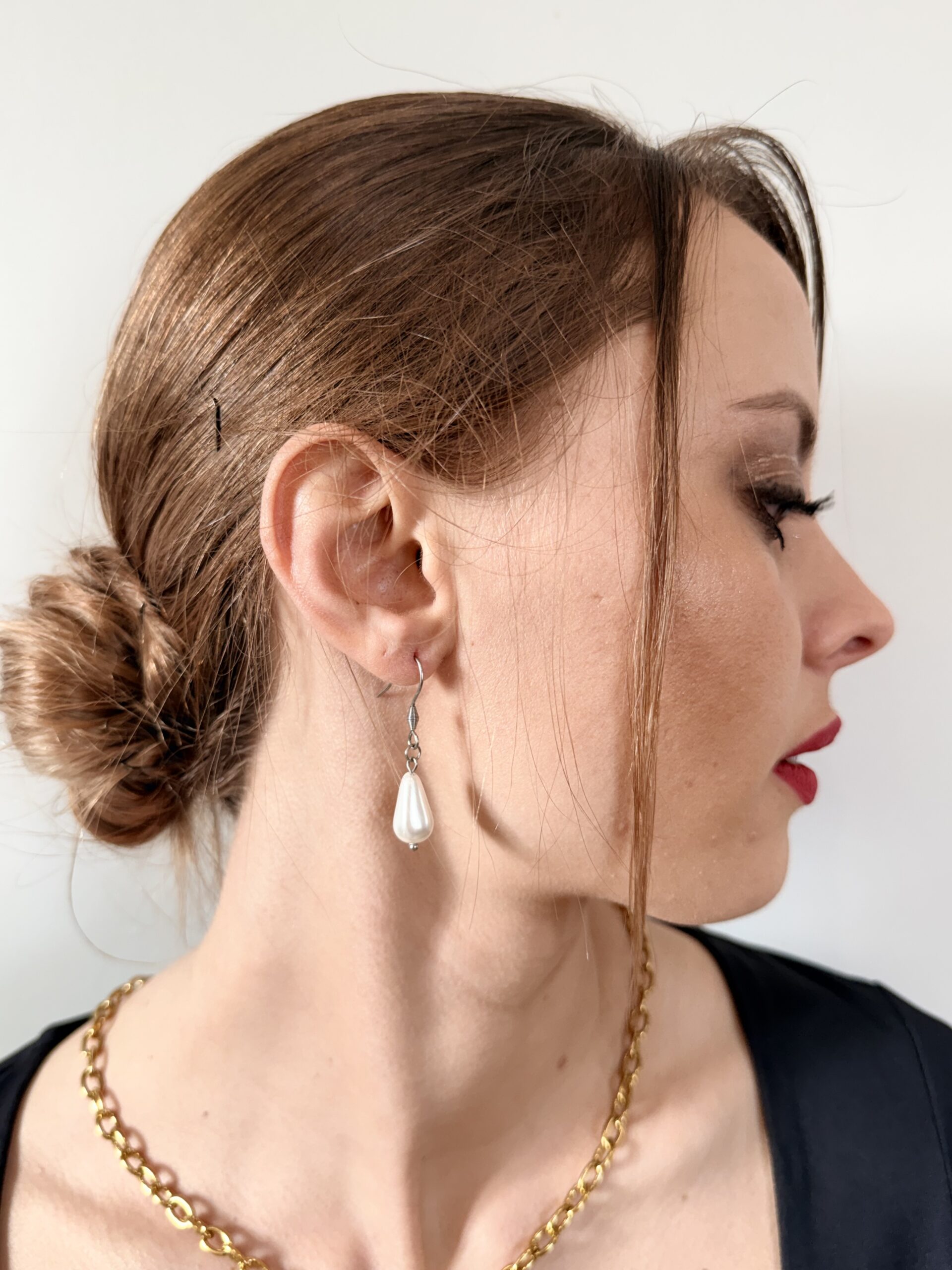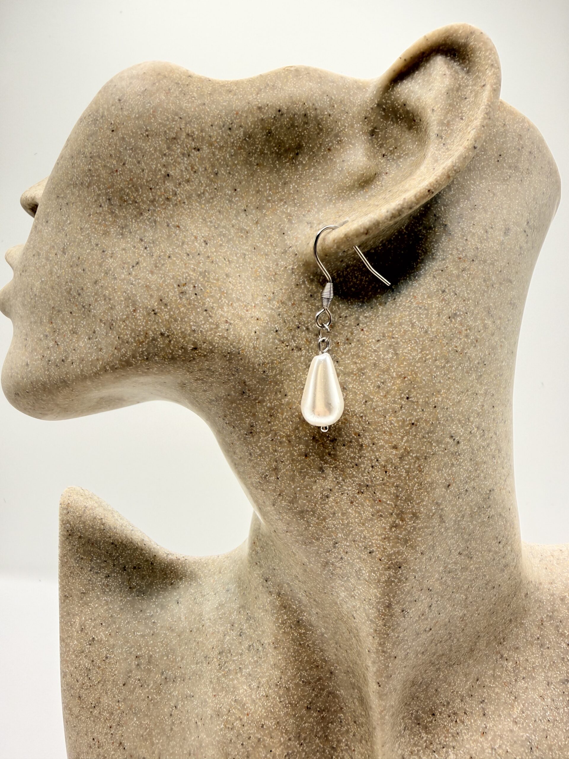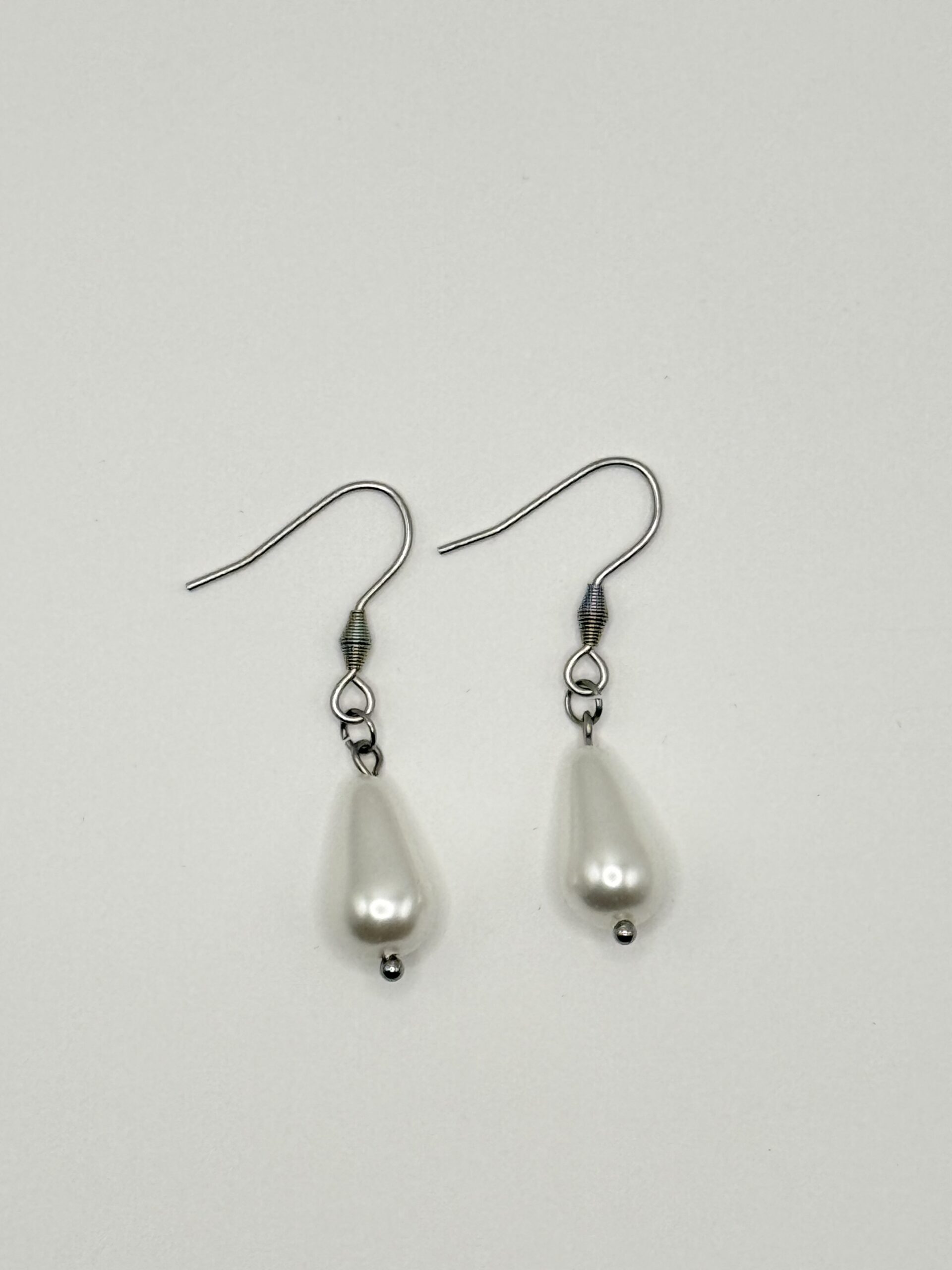 Crochets d’oreilles en acier inoxydable argenté avec une perle poire en verre.