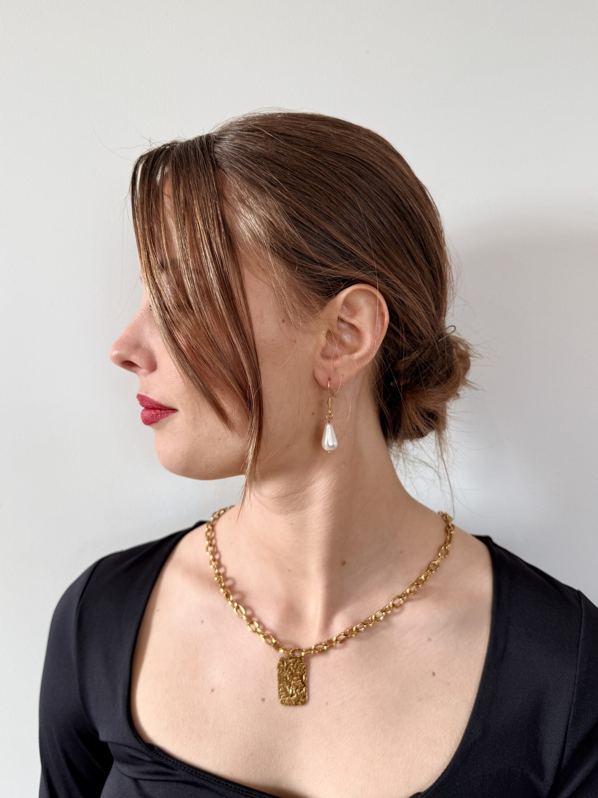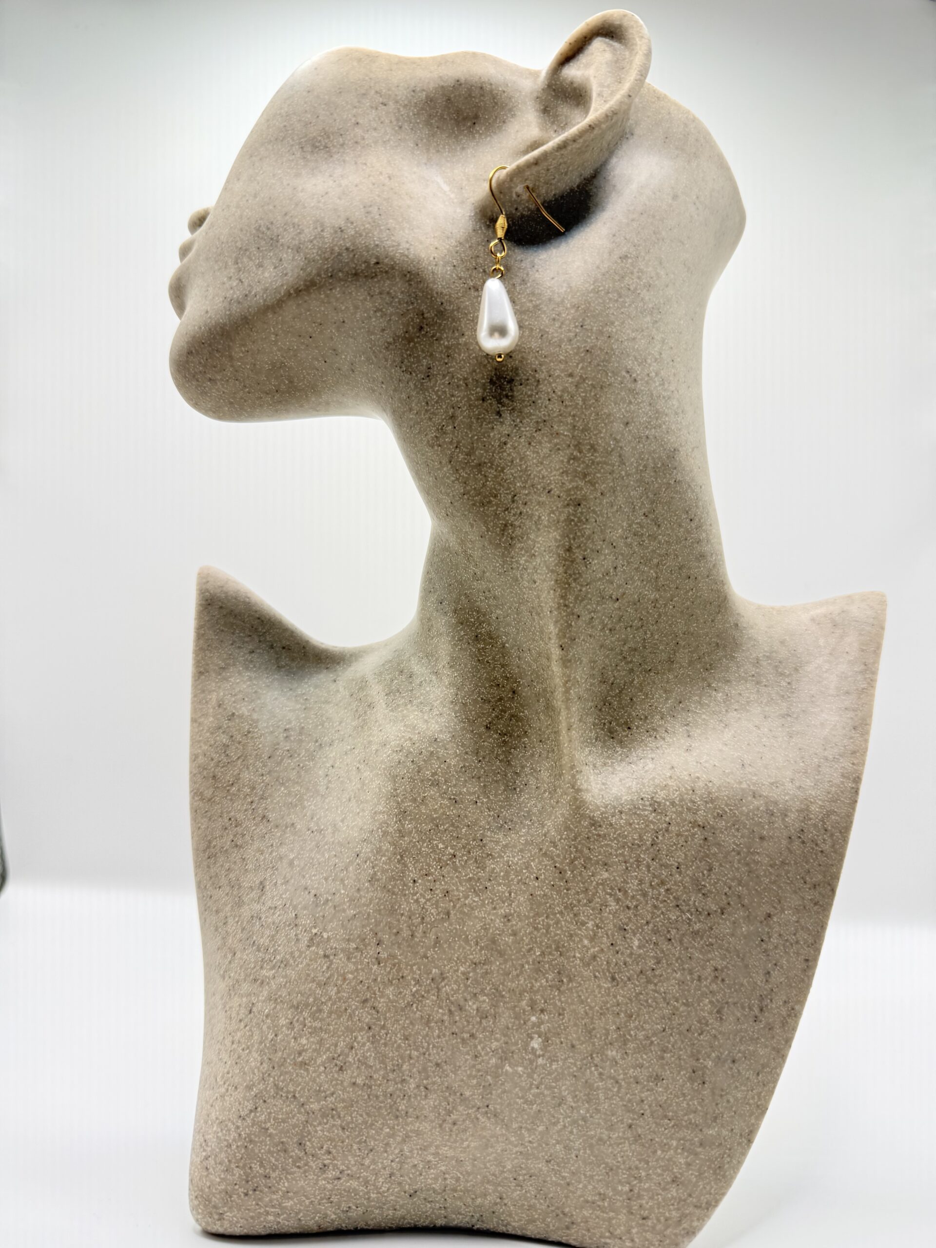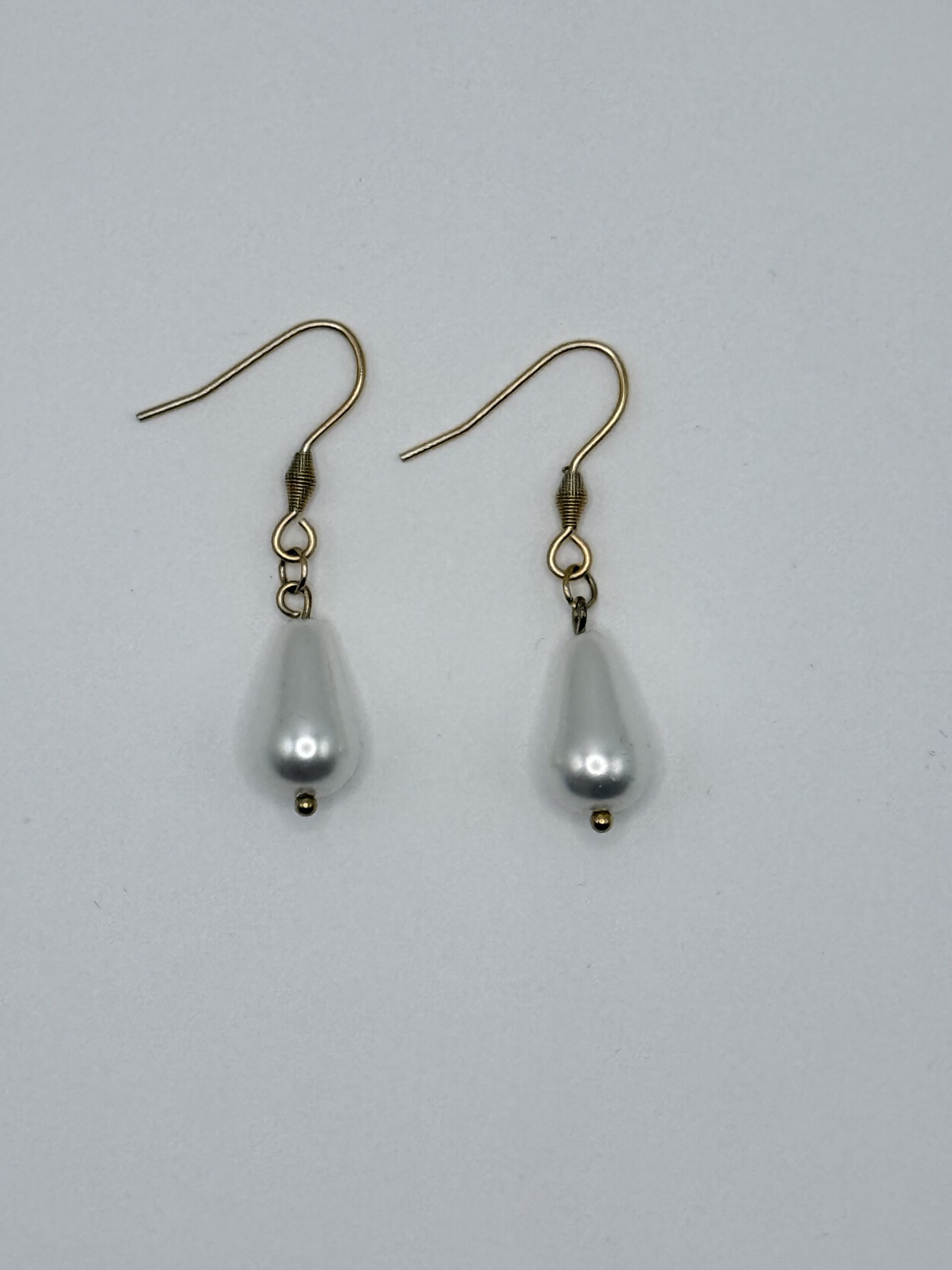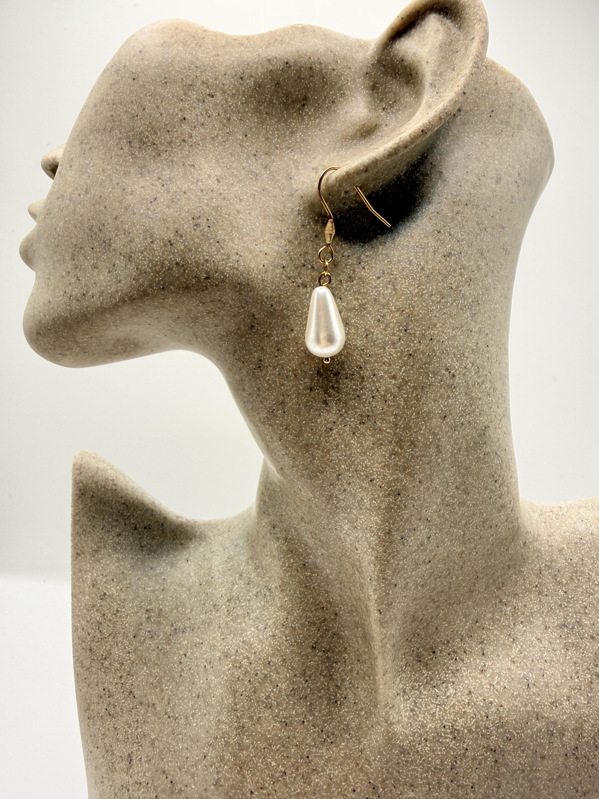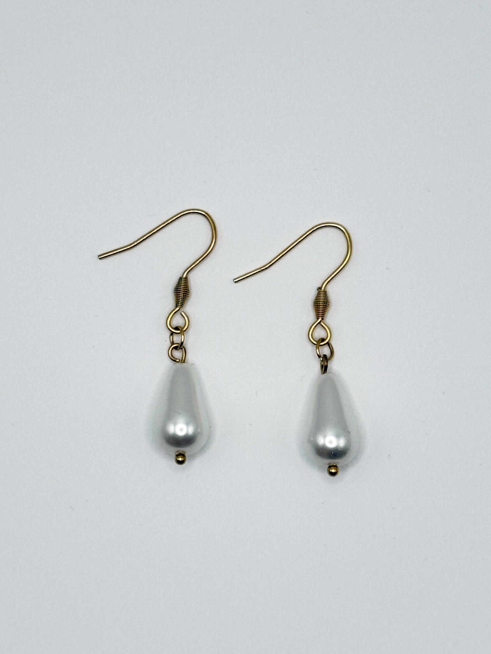 Crochets d’oreilles en acier inoxydable doré avec une perle poire en verre.