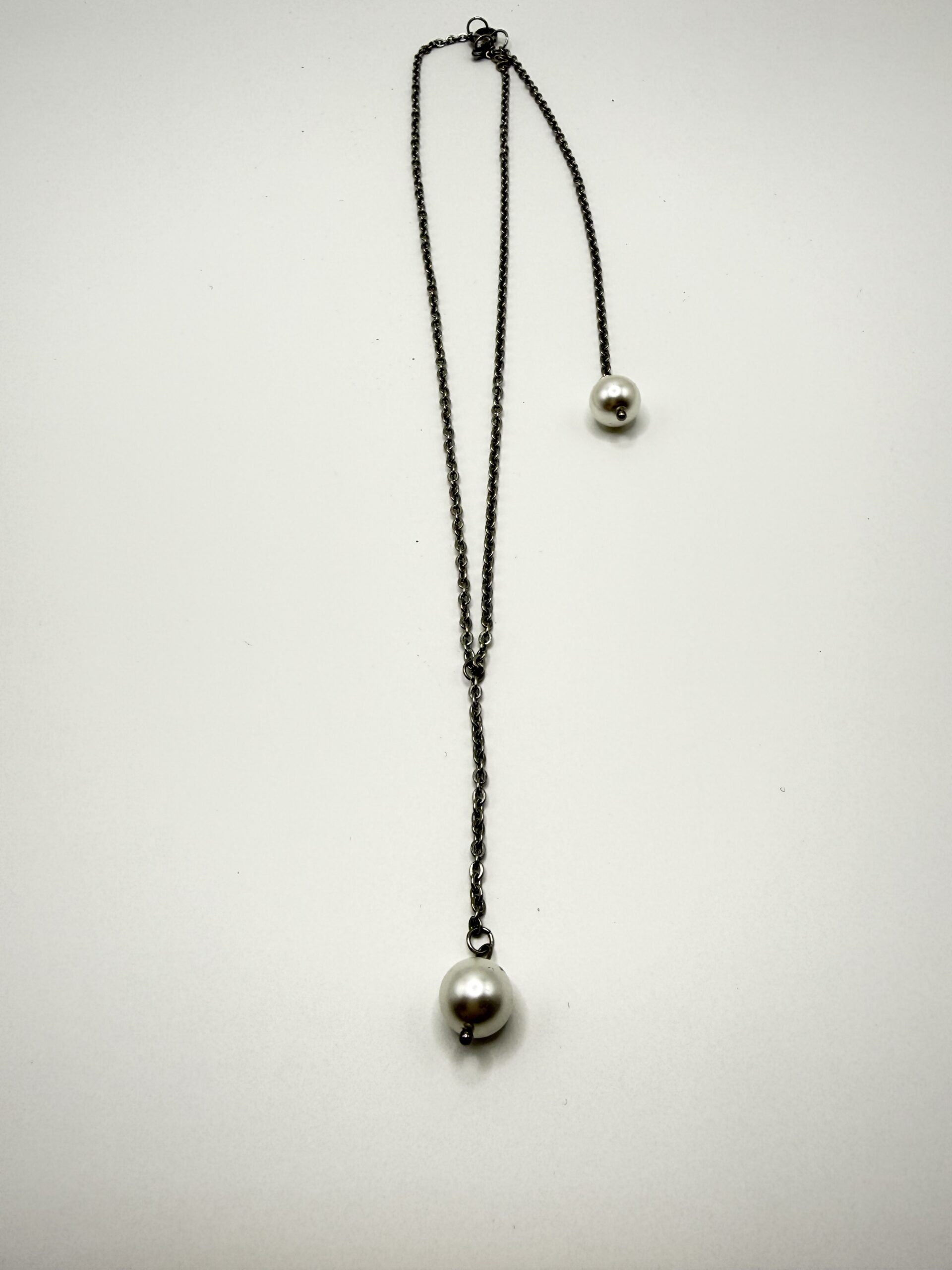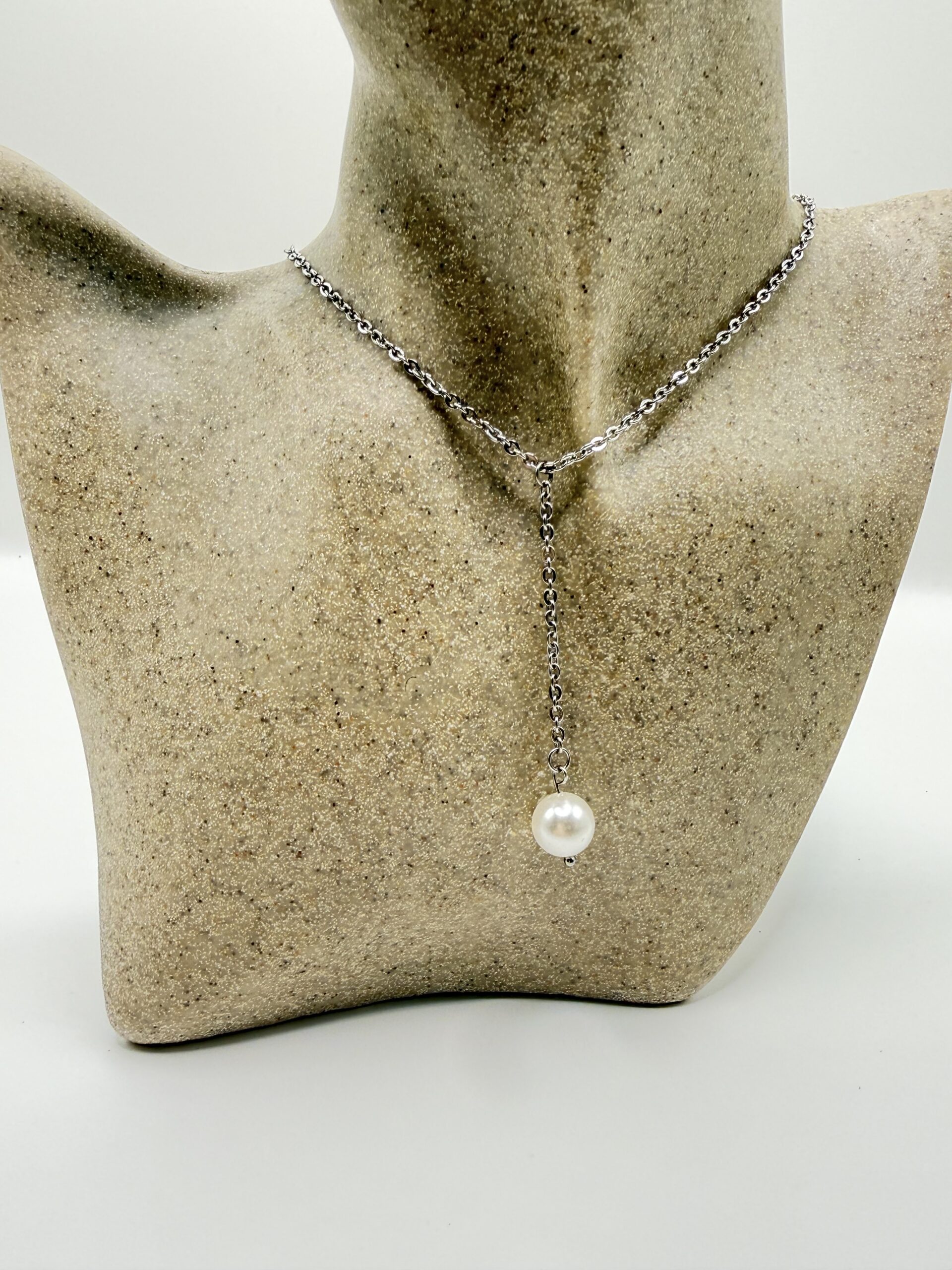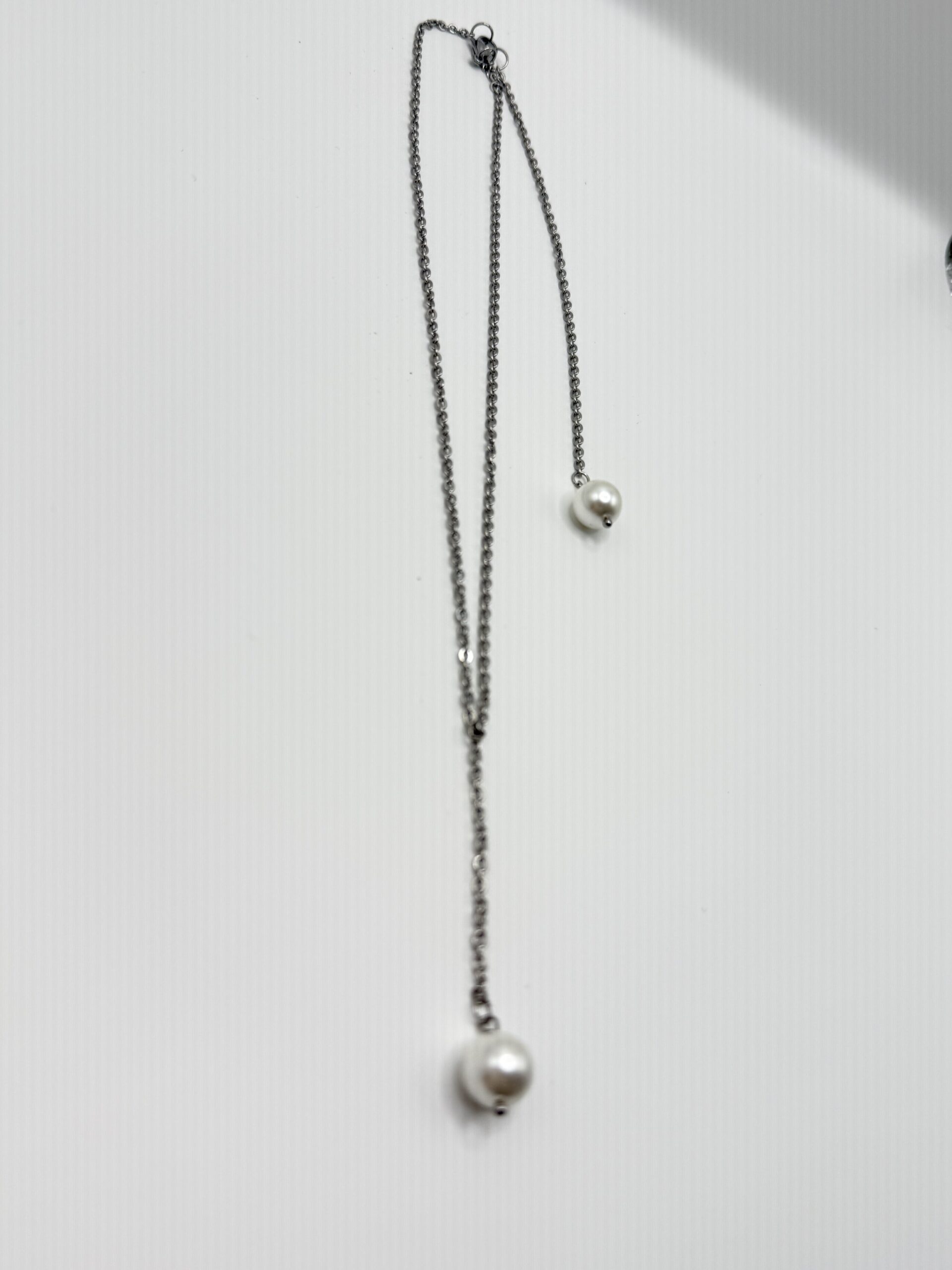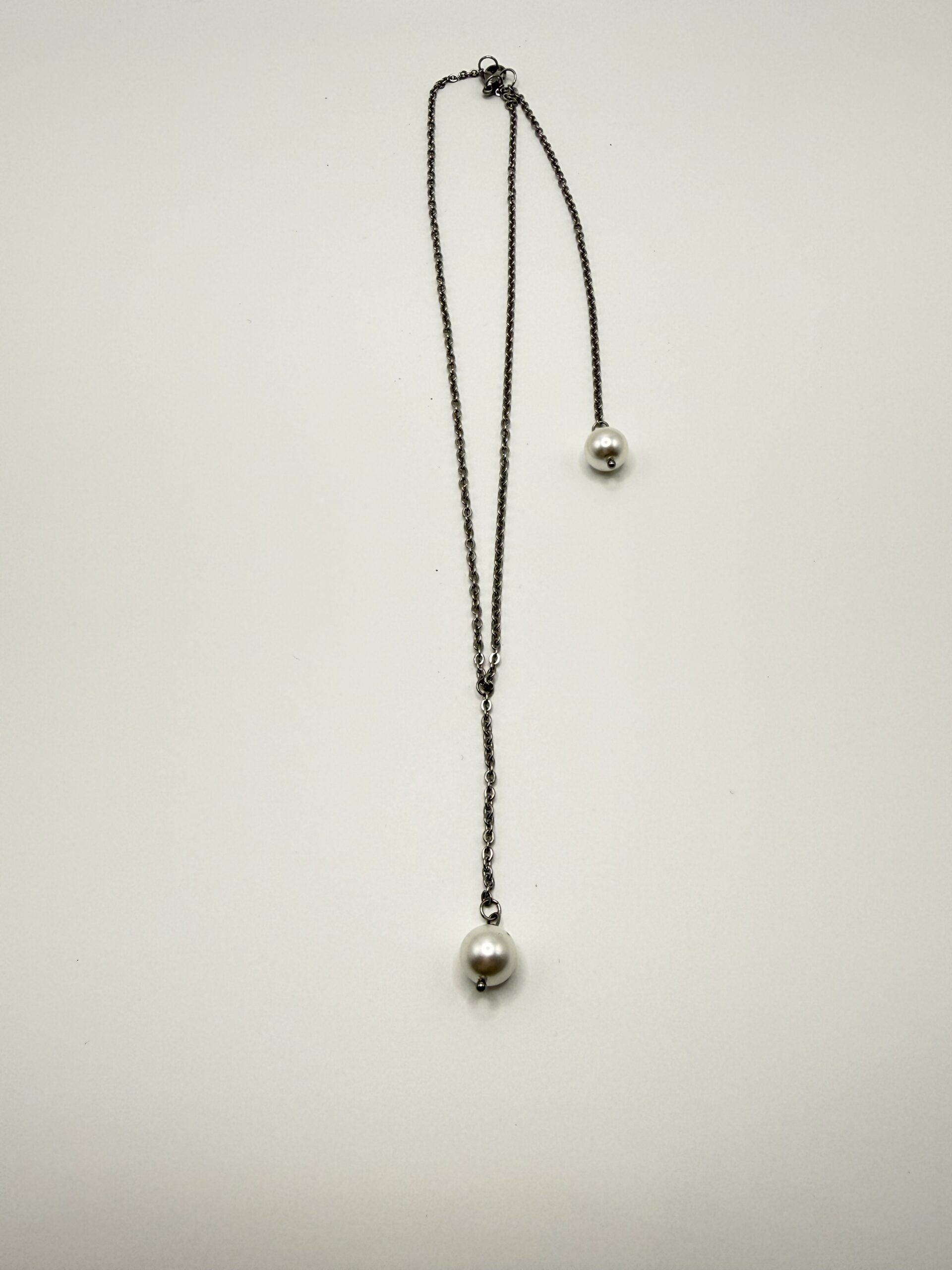 COLLIER CELESTE ARGENTÉ avec une chaine de dos amovible, acier inoxydable et perles en verre.