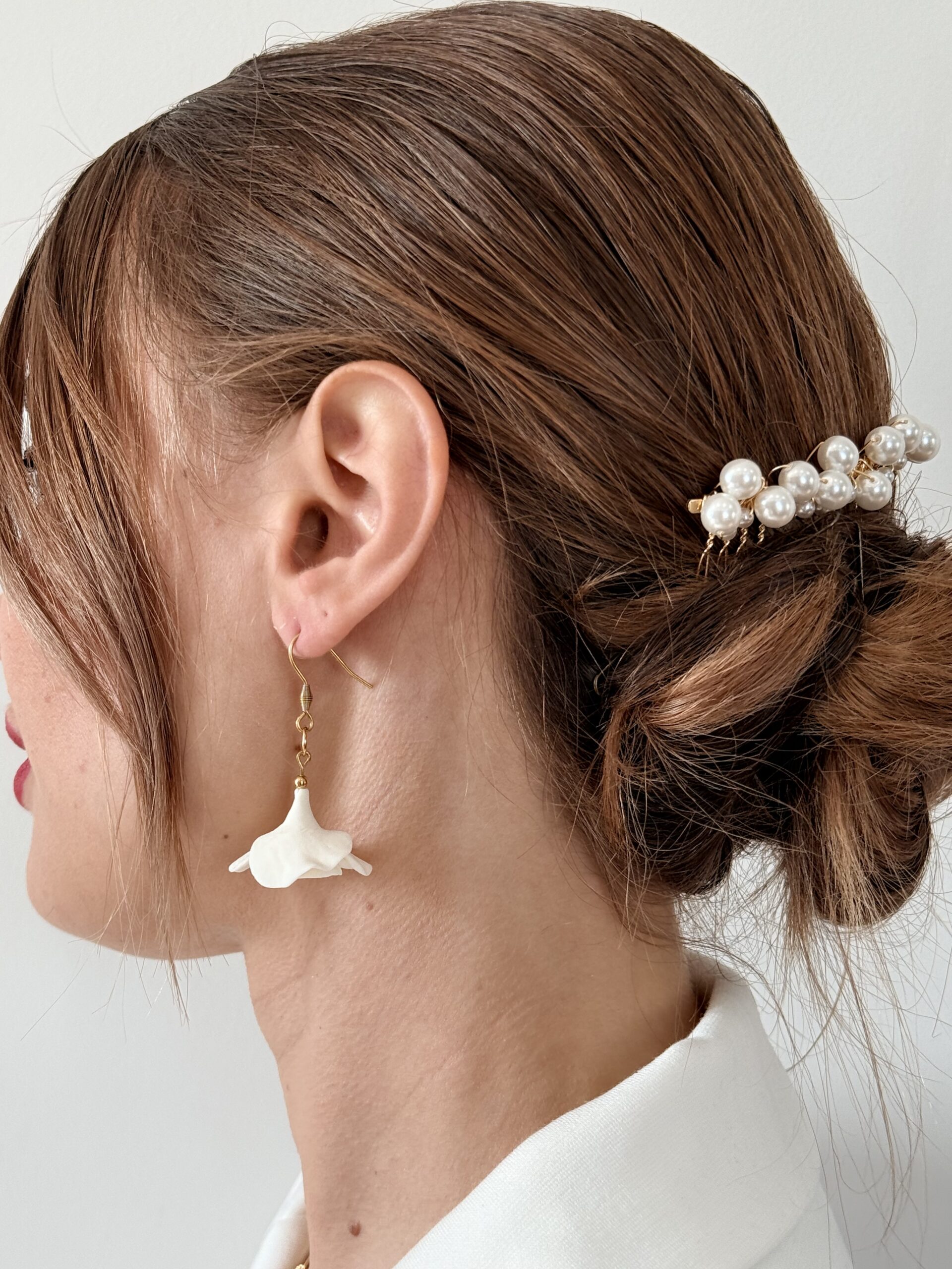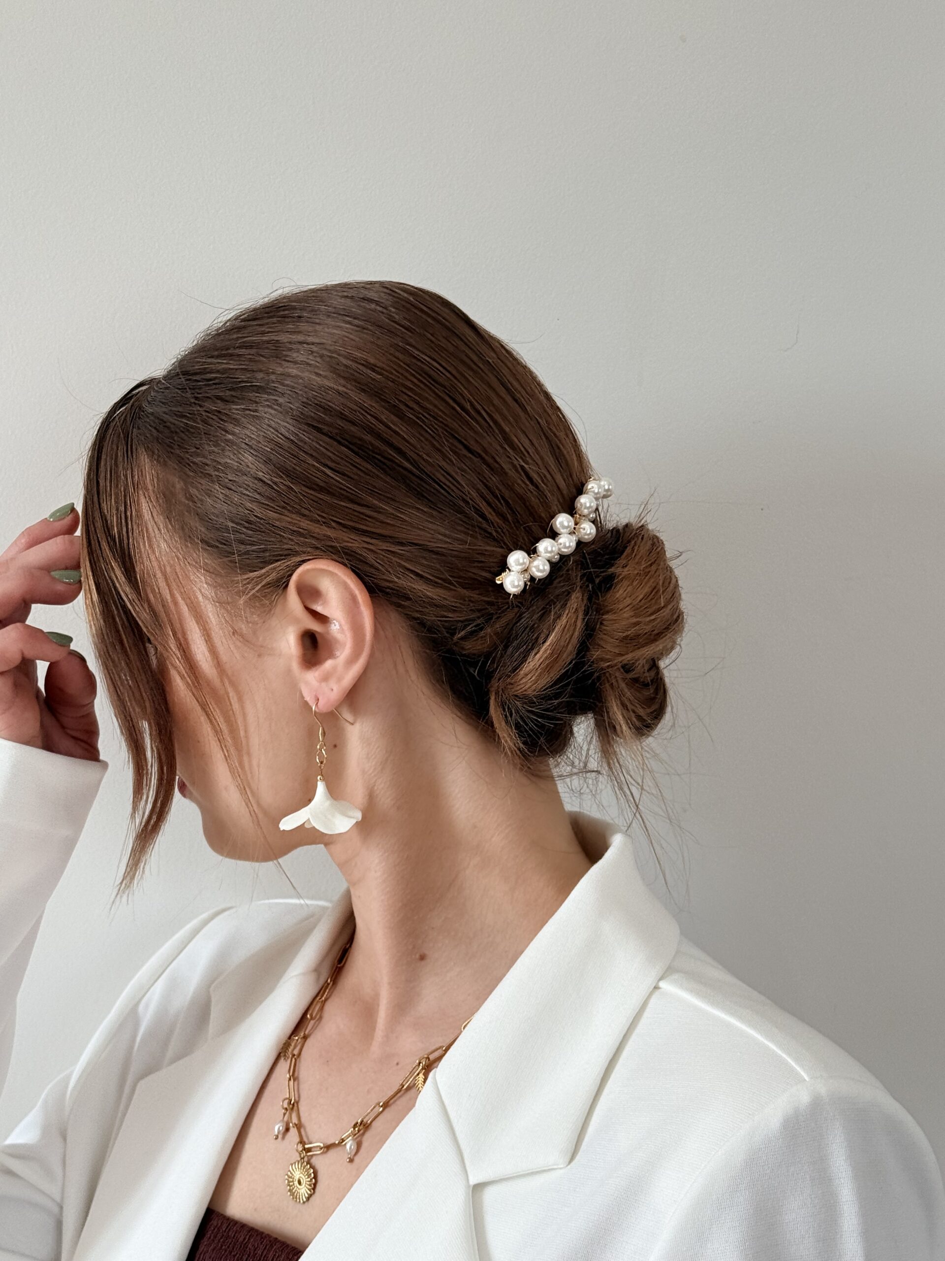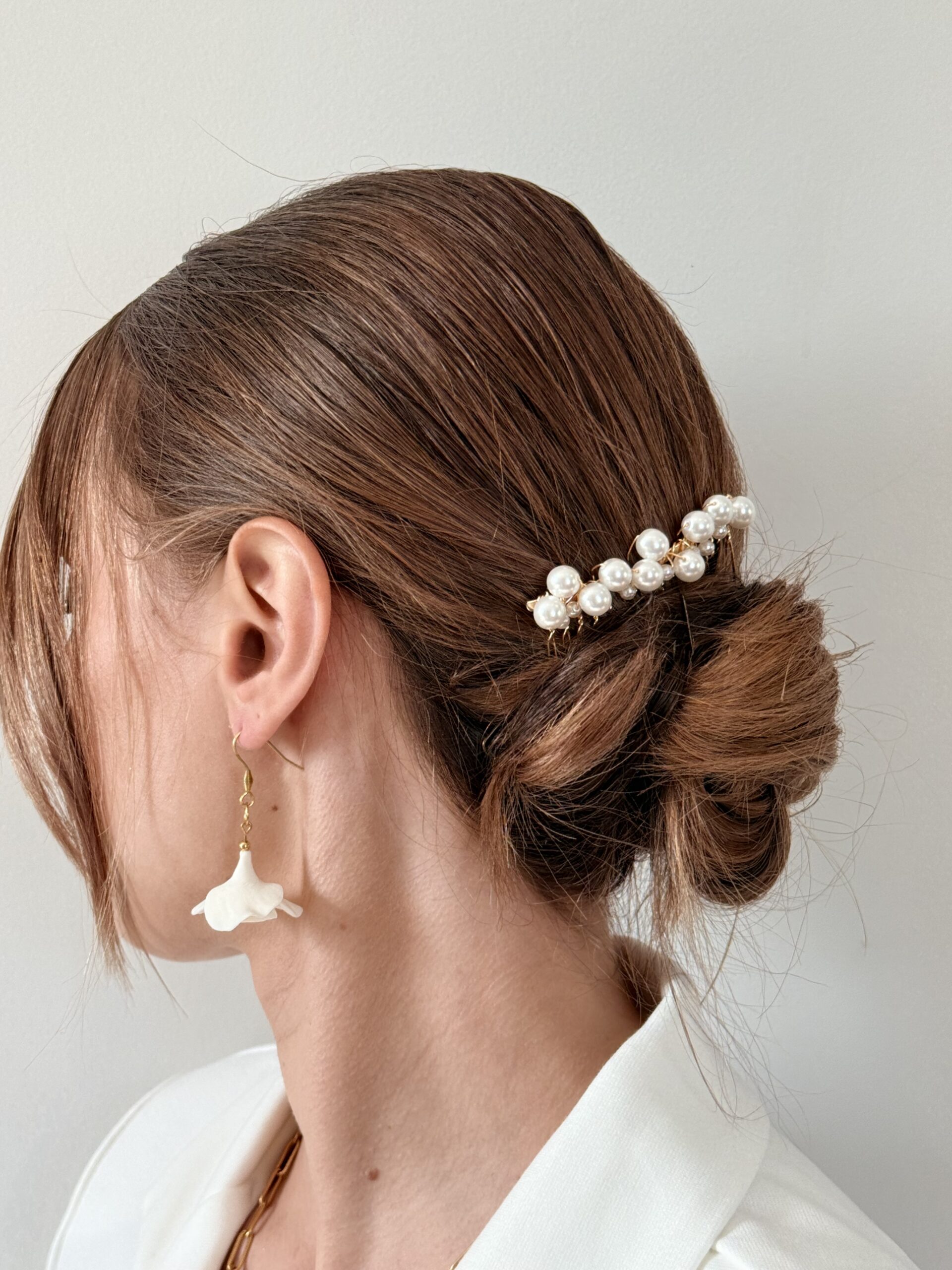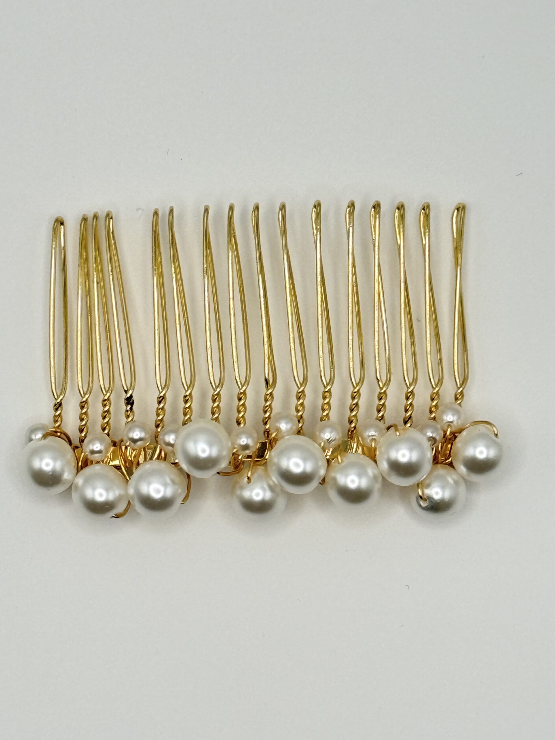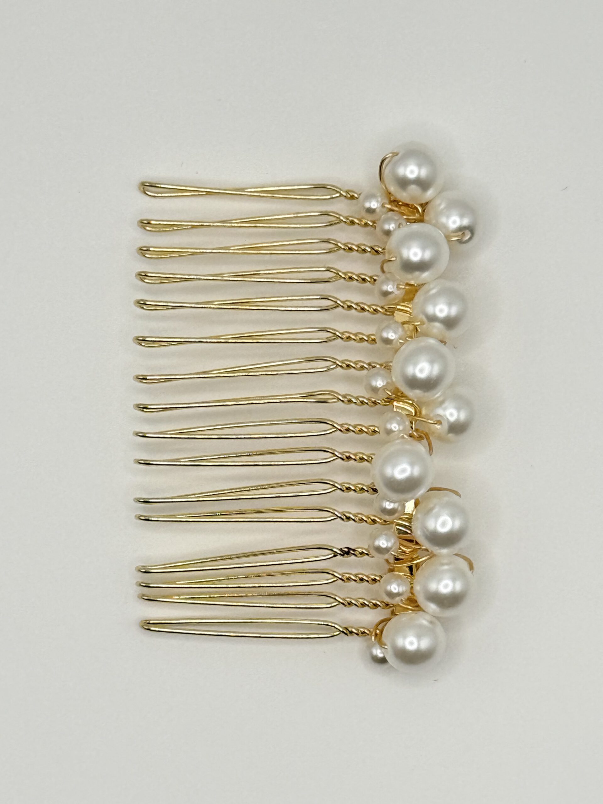 PEIGNE PERLÉA DORÉ , peigne en laiton orné de perles en verre sur fil de cuivre .