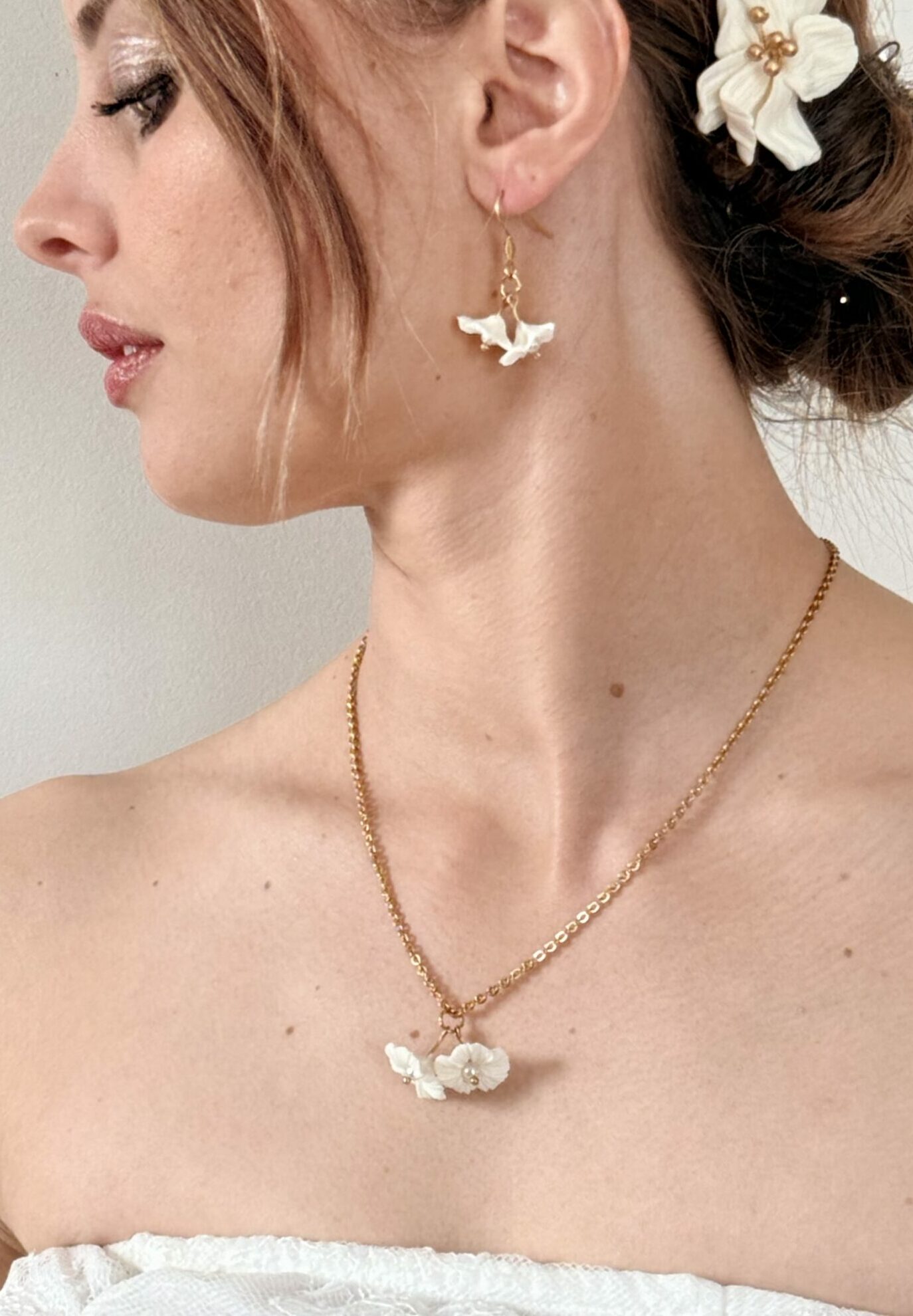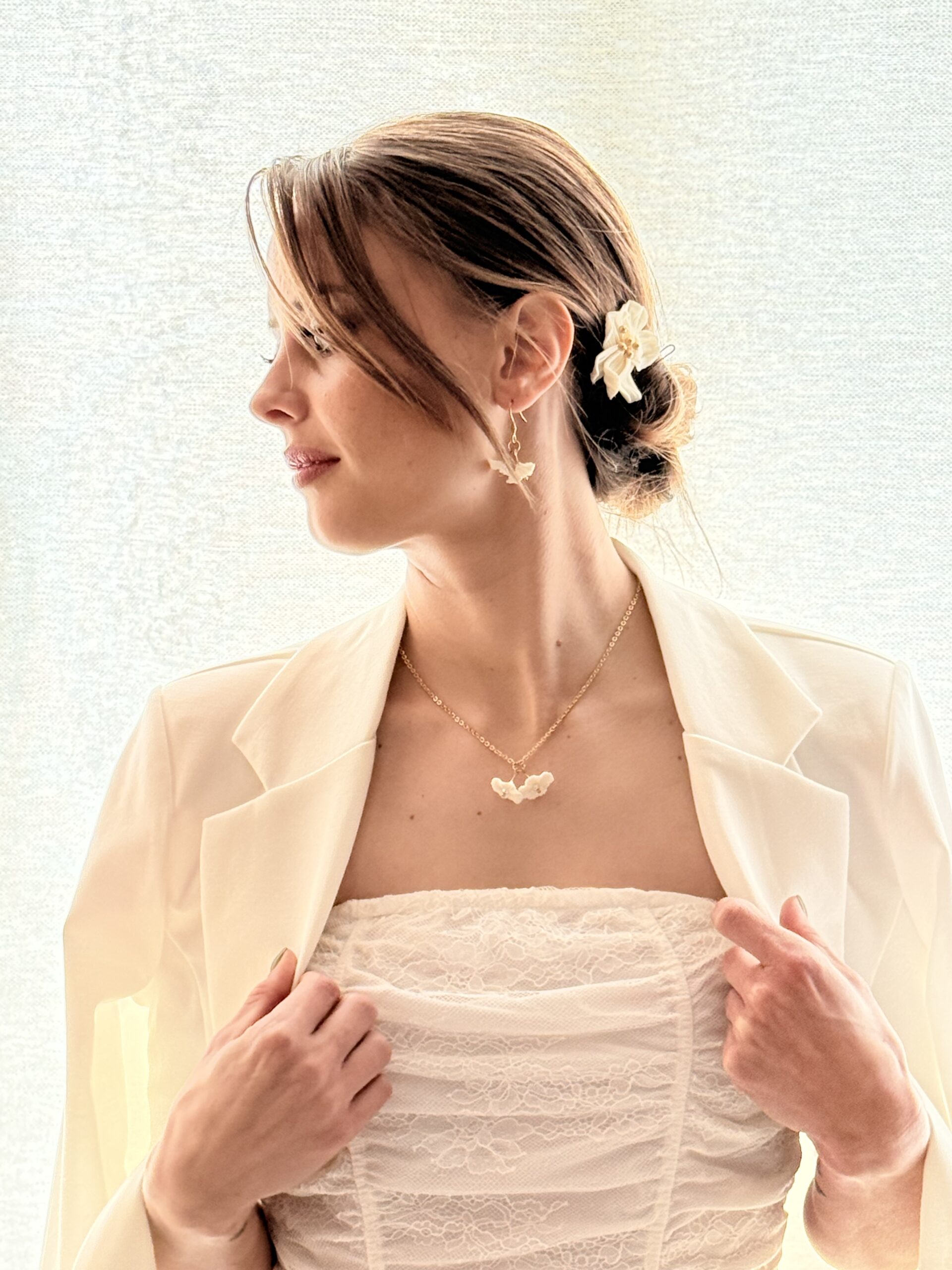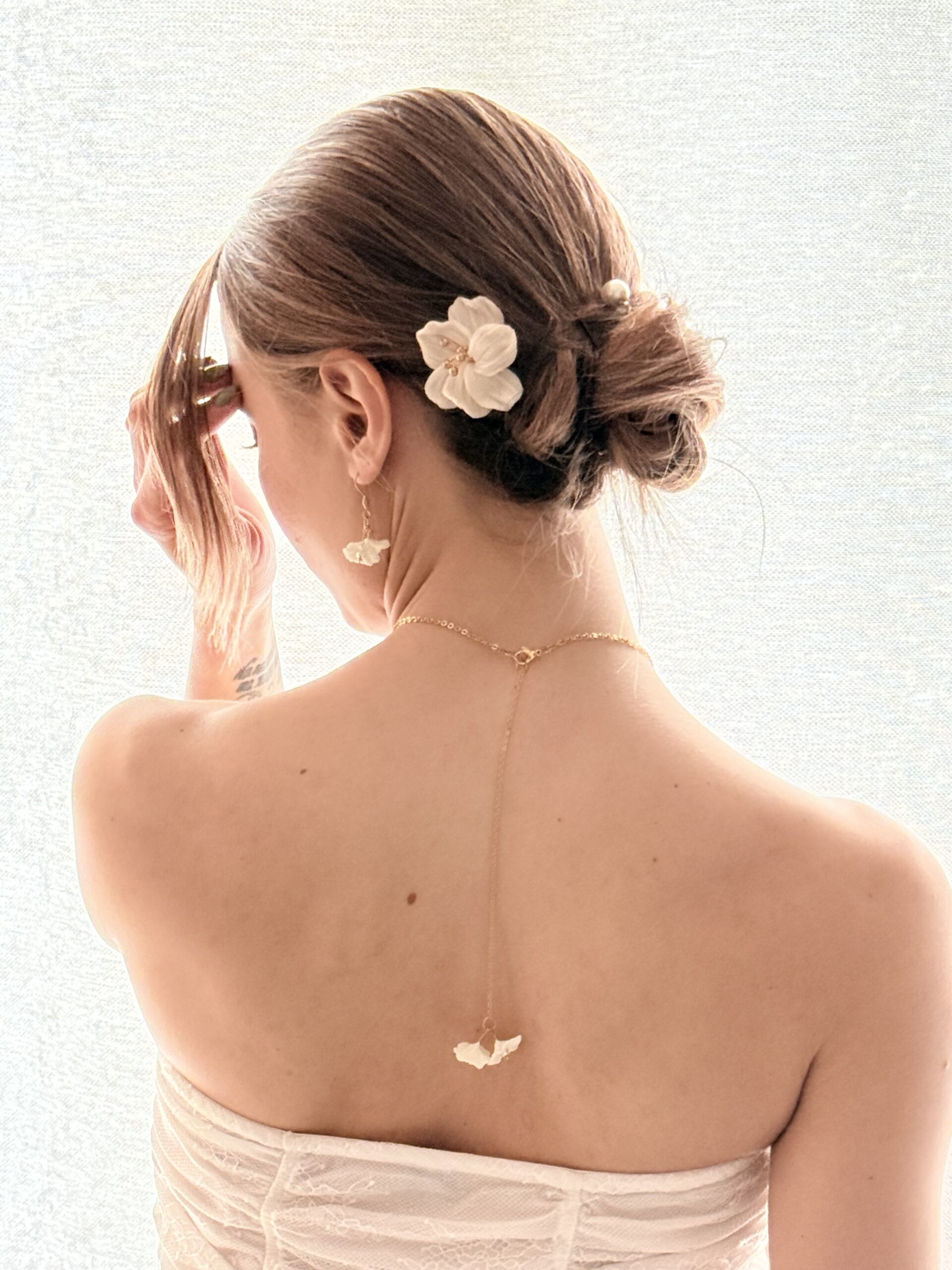 ELORIA sublime la coiffure avec poésie, comme une fleur délicatement posée dans les cheveux pour accompagner les plus beaux instants.
