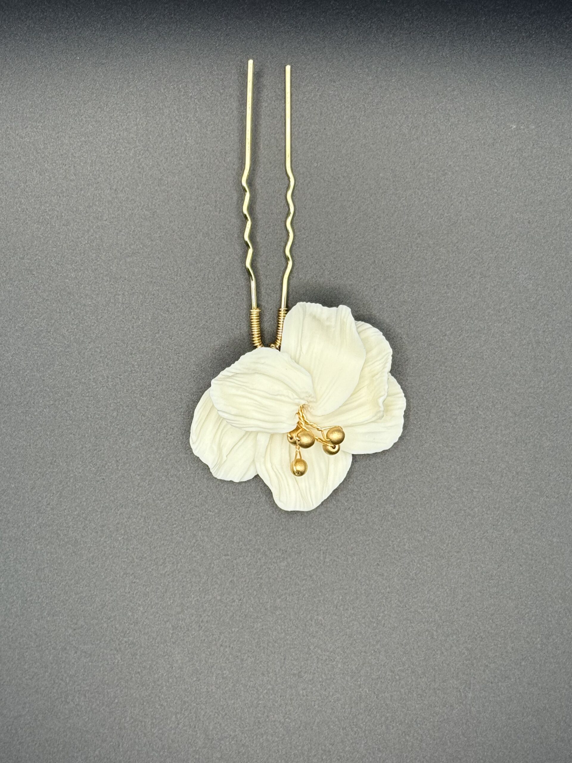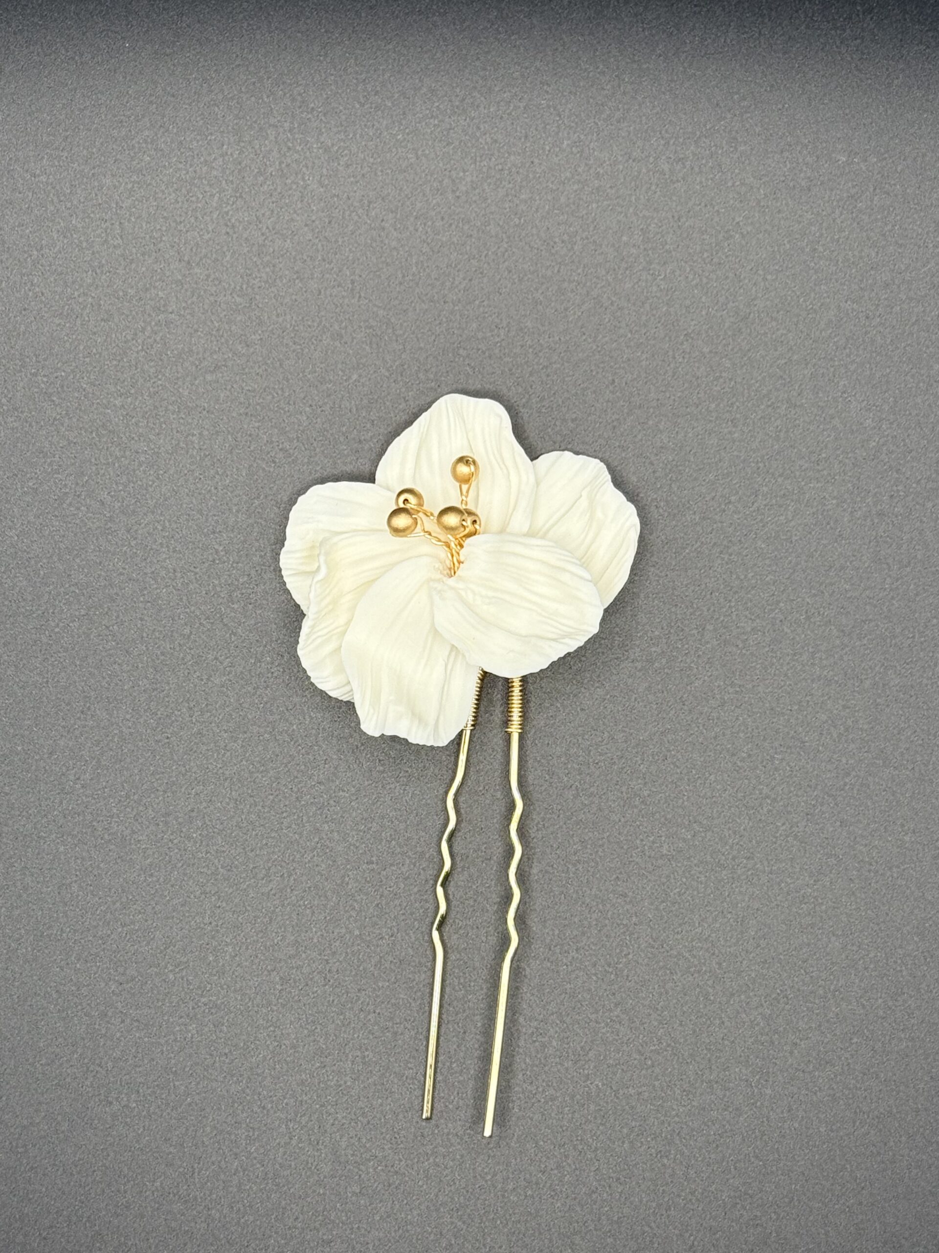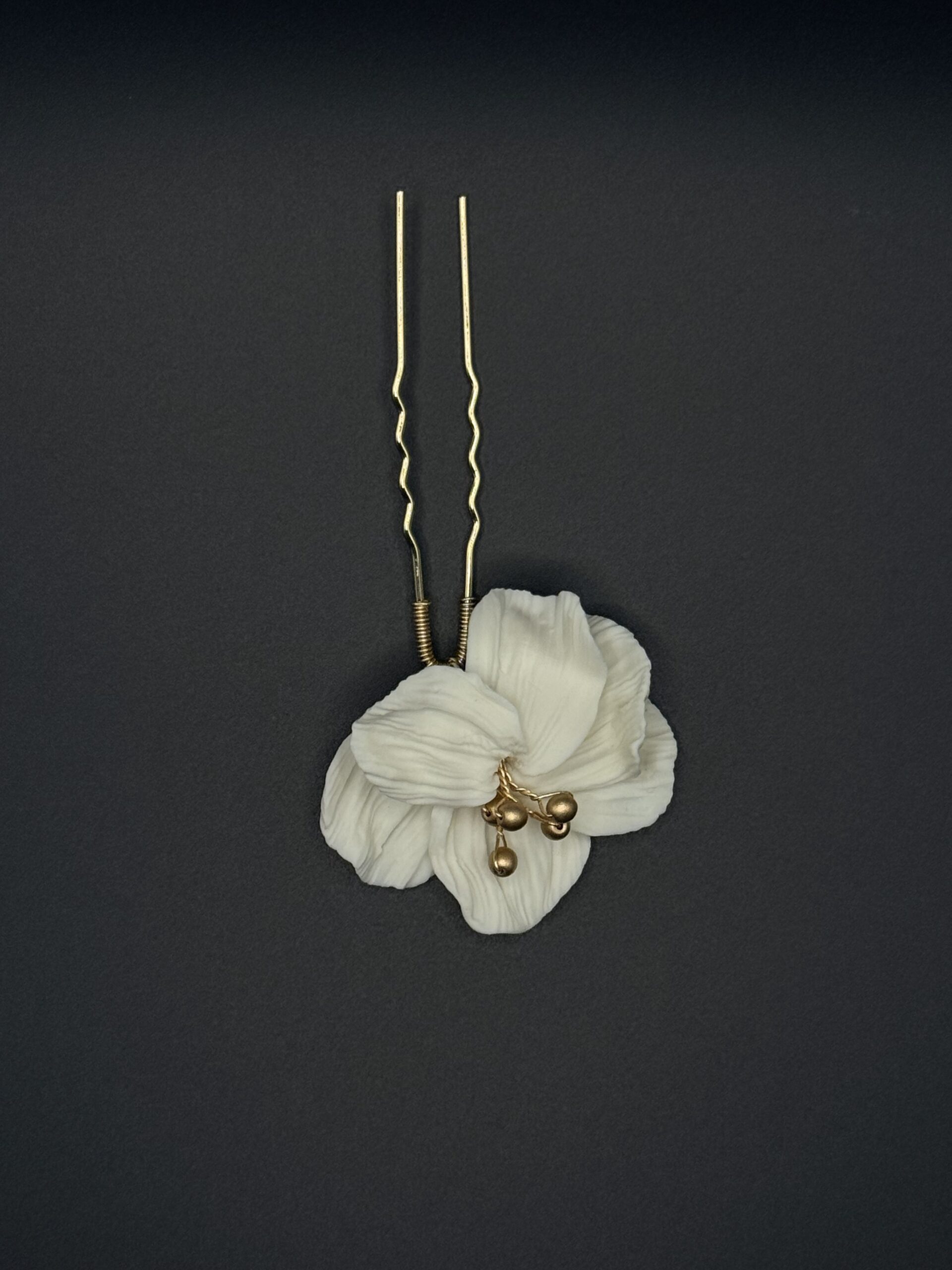 PIC A CHEVEUX ELORIA DORÉ en laiton et fleur en porcelaine froide